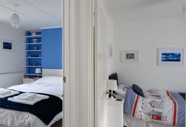 Two bedrooms sleep four, with flexible bed arrangements and fresh linens.